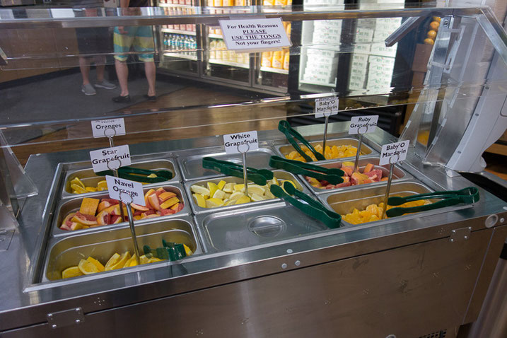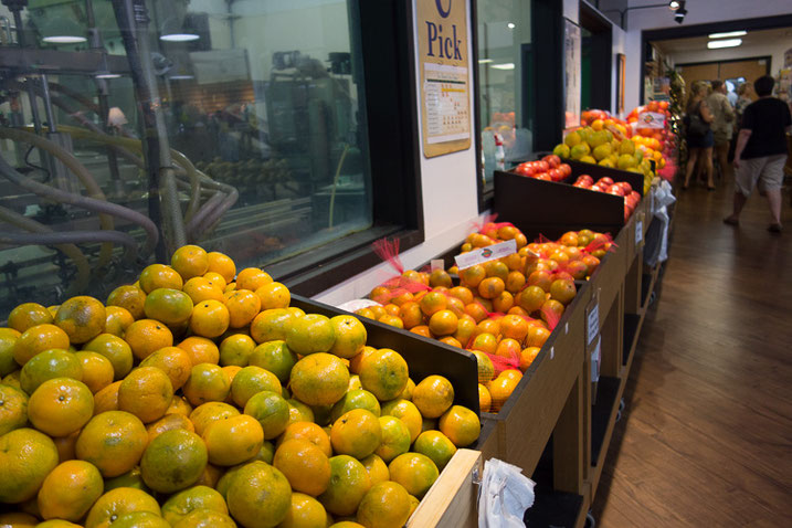 Der Besuch bei Sun Harvest ist immer ein Event und die Meilen wert, die man dorthin fährt. Die Probiersäfte sind ganz hervorragend und die Probe-Stückchen der Orangen und Grapefruit einfach köstlich.