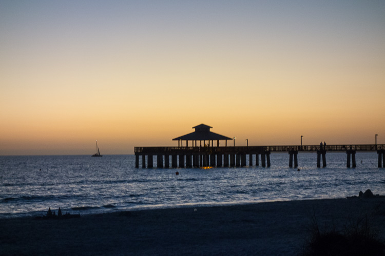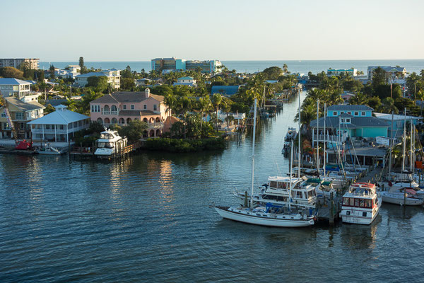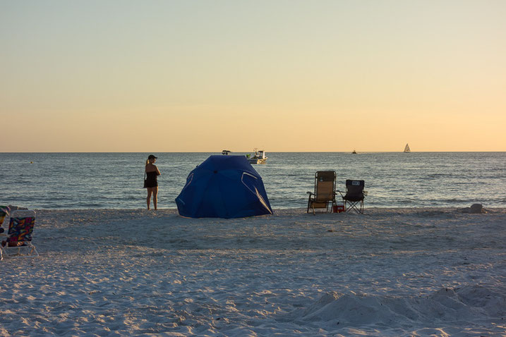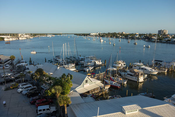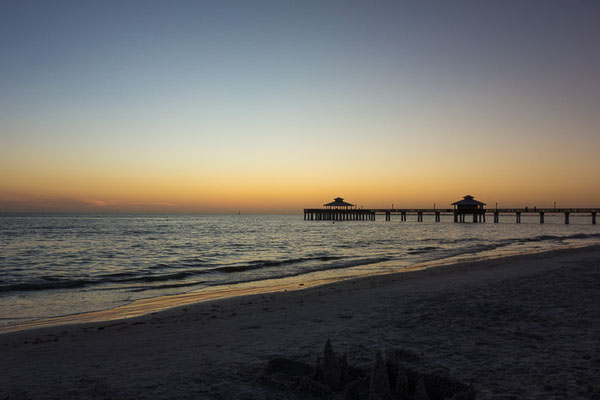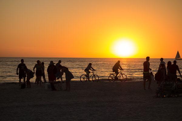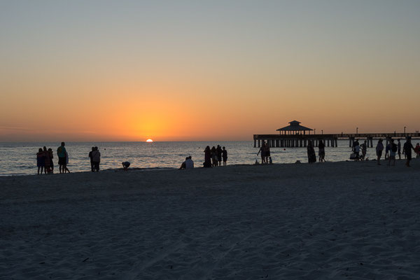 Die Fahrt dorthin geht nur langsam voran und wir befinden uns mit vielen anderen auf der gleichen Straße in die gleiche Richtung, ein paar Autos biegen dann nach Sanibel ab, was uns aber nicht sehr viel hilft, um wirklich schneller voran zu kommen. Wir parken bei Doc Ford's und machen uns dann gleich auf den Weg über die Brücke nach Ft Myers zum Strand.