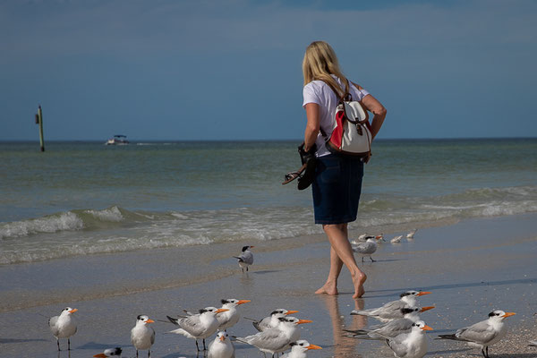 Wir genießen den Anblick, der Wellen, des Sandes, der ganzen Vogelscharen von Möwen, Sandpipern und ihren Jungen, sowie natürlich der balzenden Royal Tern. Mit einem Wasser von einer Strandbude in der Hand verlassen wir Clearwater Beach um dann über die Seven-Mile-Bridge wieder aufs Festland zu kommen und unseren Weg nach Cape Coral fortzusetzen.