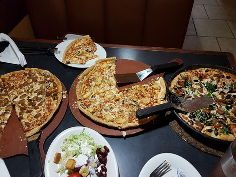 Die Fahrt wird lang und länger, Rolf hatte sich gewünscht seiner Schwester noch dies und das am Wegesrand zeigen zu können, aber als dann der Berufsverkehr bzw. wahrscheinlich eher Wochenendverkehr einsetzt wechseln bei Sarasota doch von der US 41 auf die I-75 die uns schneller gen Süden bringt. Hinter Punta Gorda wechseln wir zurück auf die US 41 - nicht mehr weit und wir weilen wieder in bekannten Gefielden. Wir kommen ganz zufällig bei der Abfahrt von der I-75 bei Pizza Hut vorbei und beschliessen heute abend nicht mehr selbst zu kochen. Wir haben jedoch etwas viel bestellt und auch gegessen. Trotzdem haben wir den Laden mit Packages unter dem Arm verlassen, es war nicht zu schaffen.
