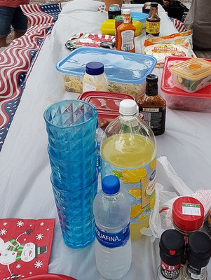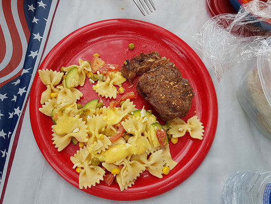 Nach unserem mehr oder weniger ausgibigen Strandspaziergang haben wir uns einen schönen Tisch gesucht und gedeckt. Wir wurden „begrillt“ und haben jeden Bissen genossen. An verschiedenen Würstchen, Fleisch, Soßen und Gemüse, Obst und diversen alkoholfreien Getränken ging kein Weg vorbei. Alle Kühltaschen waren gut gefüllt mit Köstlichkeiten. Ja, es geht uns wirklich sehr gut.