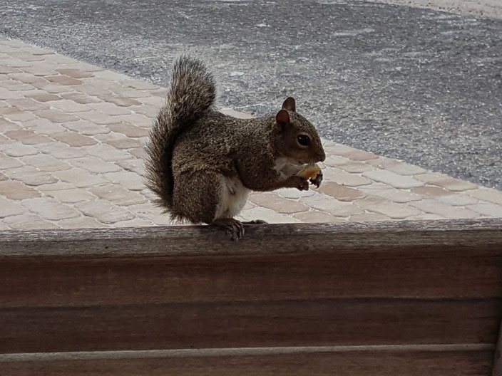 Heute heißt es erneut, früher wie üblich aufzustehen, da wir wieder eine längere Fahrt vor uns haben. Wir haben uns mit lieben Freunden zum Chillen und Grillen verabredet. Coquina Beach auf Anna Maria Island bietet sich dafür als ganz wundervolle Location an, und liegt etwa in der Mitte unserer beiden Domizile. Wir finden den vereinbarten Treffpunkt auf Anhieb und werden zwischen Parkplatz und Strand von einem Hörnchen, einem Nagetier, hier sagt man Squirrel, begrüßt.