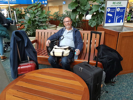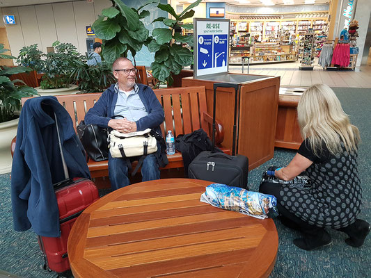 Das Auto abgeben war nur Minutensache, nochmal überall schauen, dass man nichts liegen läßt und auf gehts in die Flughafenhalle, zum Check in unserer Koffer. Alles ok – Gewicht stimmt und jetzt können wir uns gemütlich in die große Halle setzen und sogar noch ein wenig die Taschen umpacken und sogar noch um und in die Geschäfte schlendern, bevor wir durch Sicherheitskontrolle gehen müssen.