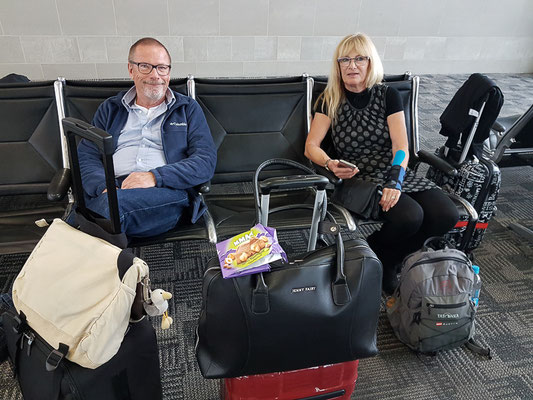 Das Handy weckt uns pünktlich und wir gehen erst einmal zum Frühstück. Dann ziehen wir uns flugtauglich an, ohhh ist das warm – diese Thrombosestrümpfe und eine dicke Jacke – ja man wird es bei uns zu Hause brauchen. Im Flieger ist es oft auch mal zugig und dann ist das auch angenehm.