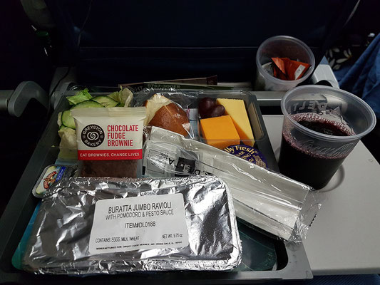 Irgendwann hat man dann Durst und muß für jeden Becher Wasser fragen. Sie haben keine kleinen Flaschen an Bord, achja und das was auf der Menükarte stand, war auch nicht komplett an Bord. Die Flugbegleiterinnen können ja nichts dafür, ok – aber sie könnten trotzdem freundlich sein und nicht unbedingt von mir erwarten, dass ich drei Becher Wasser durch das ganze Flugzeug trage, weil ich ganz nach hinten gegangen bin und für Bea, Rolf und mich nach 3 x Wasser gefragt habe. Da werde ich auch noch angeherrscht, ich hätte mich einfach umgedreht und wäre wieder zu meinem Platz gegangen, jetzt müsste sie mir mit den Bechern hinterherlaufen. So einen Service hatten wir ja noch nie, aber vielleicht hatte sie auch nur einen schlechten Tag, oder Schmerzen, oder gar Liebeskummer….