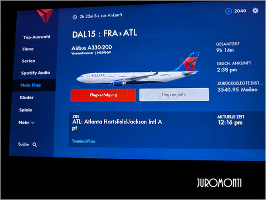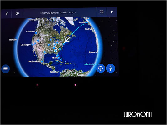 Die üblichen Sicherheitshinweise wurden abgearbeitet und alles ging seinen Gang. Sitze aufrecht, anschnallen und ab in die Luft. Dann dauert es ein wenig bis man Kaffeeduft wahrnimmt. Dieser Duft in einem Flugzeug ist ein ganz besonderer, er zieht durch die ganze Kabine und man freut sich auf die ersten Getränke, die angeboten werden. Zwischendurch zappt man schon mal Entertainment-Angebot und schaut sich die Flugverfolgung und Daten der Maschine an.