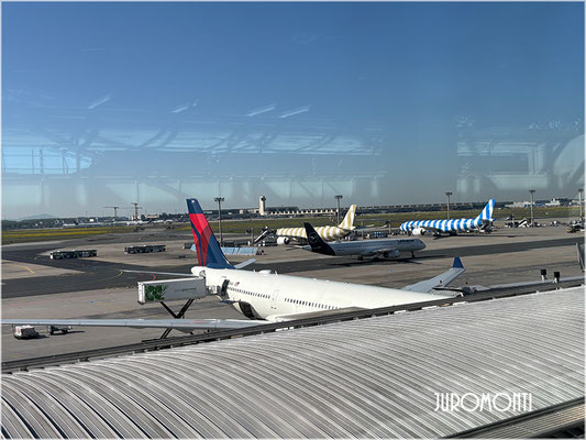 Ein paar Schritte weiter sind die An- und Abflugtafeln, wir kontrollieren nochmal und gehen zum Bähnchen ohne Fahrer, das uns zuverlässig zu unserem Gate bringt. Aufpassen muss man jedoch selbst, dass man richtig aussteigt.