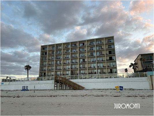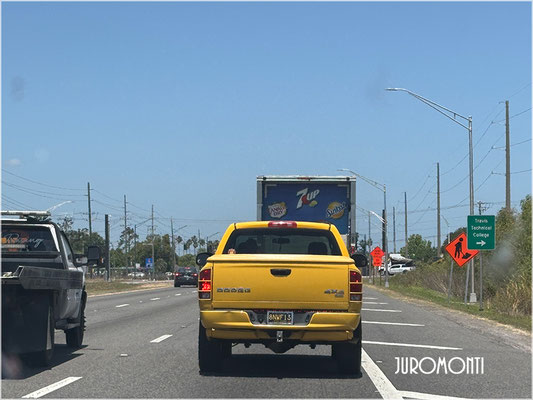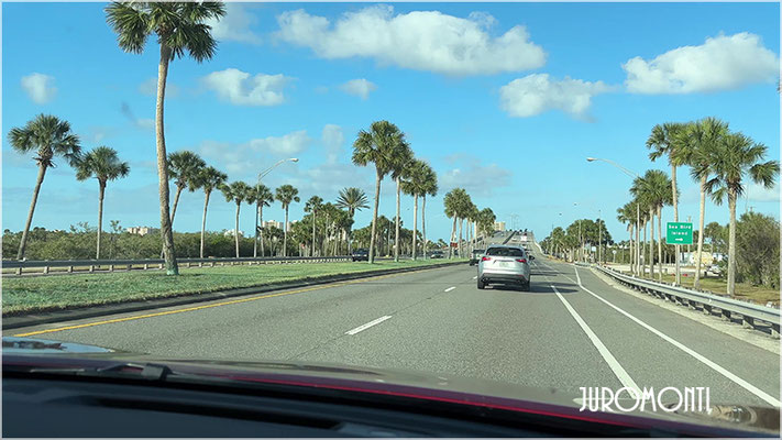 Unser Auto steht noch artig da und wartet, dass es endlich weitergeht und Cody kann es ebenfalls kaum abwarten Daytona Beach zu sehen. Die Fahrt war dann doch etwas länger, als geplant – aber um 18:30 Uhr können wir den ersten Blick auf Daytona Beach werfen.