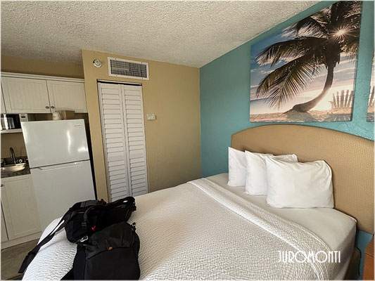 Das einchecken hier war wieder bei und mit echten Menschen möglich. Unser Zimmer ist geräumig und hat sogar eine Küche, dort können wir jetzt gleich noch unseren Einkauf unterbringen, bevor wir runter an den Strand gehen.