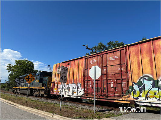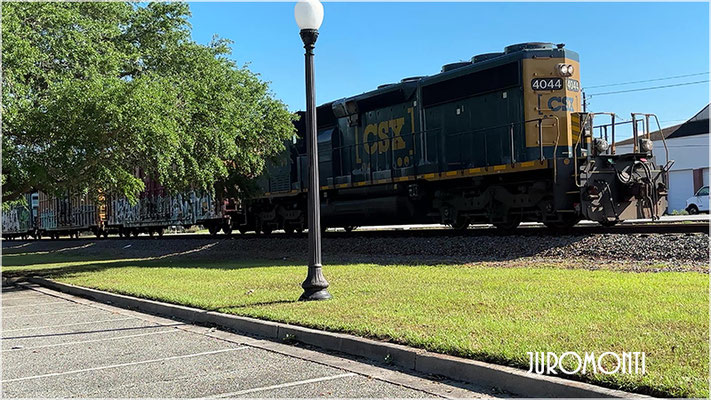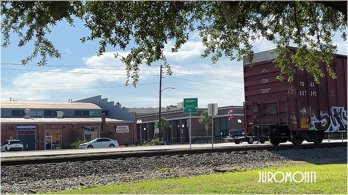Auto beladen, Getränkeflaschen (Wasser) in die Mittelkonsole, Kappen auf, Navi an und los gehts Richtung Lanier Bridge - das Wetter ist herrlich und wir können sogar den Zug, der durch Brunswick fährt noch einmal sehen.