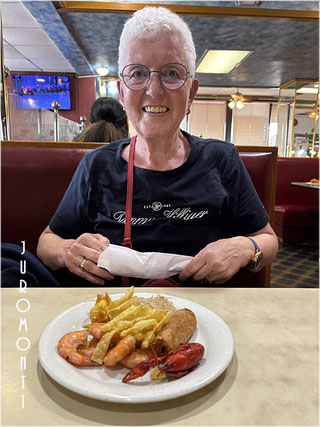….und man kann auch mal etwas noch Unbekanntes probieren. Ich stehe da noch relativ unschlüssig an einer der Theken, die Auswahl war unendlich, und schaue mir so an, was ich gerne mal probieren würde. Die Shrimps hatte ich bereits auf meinem Teller, aber diese roten Krebse – ich glaube das kenne ich noch nicht…. Ob ich das esse? Ob mir das schmeckt? Keine Ahnung…. Neben mir steht eine sehr gut angezogene Dame mit einer anderen Hautfarbe wie ich und einem grünen glänzenden Kleid – wie sagt man das jetzt politisch korrekt? Ich frage sie einfach, nach diesem roten Tier und wie man es ißt…. Eine kurze Erklärung, ein freundliches Lächeln und ich greife mir dieses rote Krebstier…. Kaum liegt es auf meinem Teller, da sehe ich die Augen…. Und sage zu meiner Nachbarin: ohh there are still eyes…. The Crayfish (Flußkrebs) looks at me and says oooh no, please don’t eat me…. Und dann standen wir beide an der Theke und lachten uns kaputt mit den Worten: ooooohhhh please don’t eat me. Humor verbindet, oder?