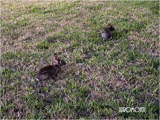 Viele kleine Häschen mümmeln rund um den Screen und ums Haus herum auf dem Rasen und als sie verschwinden und sich der Tag dem Ende neigt, gehen wir auch ins Bett.