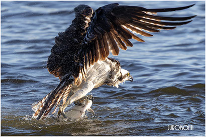 Es kommt uns so vor als wären junge Auspreys dabei, die sich beim Jagen noch nicht so gut auskennen. Aber irgendwann haben wir dann auch Glück, wie sich den folgenden Bildern entnehmen läßt.