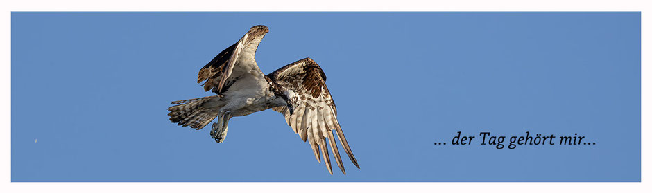 Nun folgt ein Protokoll in Fotos über insgesamt 3 Sekunden, was sich anfühlt wie ein Spiel das für beide Seiten über Leben und Tod entscheidet. Papa oder Mama, auf jeden Fall einer der größeren Auspreys wechselt den Bereich über dem See und kommt näher heran.