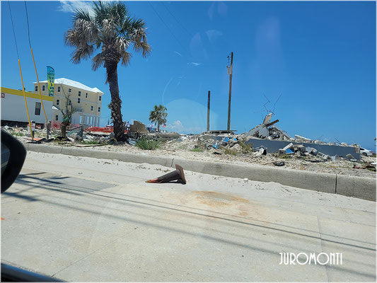 Wir hatten im Internet nachgeschaut und wußten, dass große Strandabschnitte gesperrt sind und Aufräumungsarbeiten noch einige Zeit in Anspruch nehmen werden. Aber was uns dann wirklich erwartete war einfach nur traurig und schlimm. Schlimm für alle Betroffenen, wahrscheinlich mehr für die privaten Geschäfte und Ferienhausvermieter, als für die großen Hotels die direkt am Strand stehen. Die Hotels werden hoffentlich versichert gewesen sein, aber die kleineren Geschäfte für dies und das, haben hier soweit uns bekannt ist, keine Pflicht eine Versicherung abzuschließen. Vielleicht sind daher so viele Grundstücke oder Hausreste zu verkaufen. In den Nebenstrassen sieht es unseres Erachtens noch schlimmer aus, wie direkt am Strand.