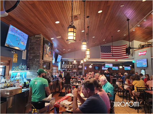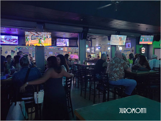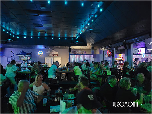 Die Webseite wirbt mit Daily Specials, Events und Live Entertainment, hier ist es jetzt schon wesentlich voller als in Ft Myers als wir gingen. Auch dieses Rusty's ist, obwohl es fast so groß wie eine Halle ist, liebevoll eingerichtet und hat eine riesige Tanzfläche. Bei dieser Musik bleibt man nicht lange ruhig auf dem Stuhl sitzen, sondern stürzt sich in die Menge.