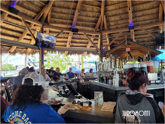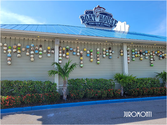 Zur Happy Hour fahren wir ins Boathous in Fort Myers. Das ist eine mehrstöckige Bar. Bisher kannten wir dieses Boathouse nicht, wir kennen nur das Boathouse in Cape Coral, aber das hat im Moment noch nicht wieder geöffnet, weil die Schäden vom Hurrucan noch repariert werden müssen.