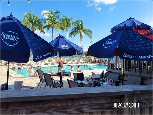 Herrlicher Schatten, immer noch sehr warm, obwohl es schon fast 16.00 Uhr ist. Die Herren genießen ein Bud light und die Damen nehmen Cola. Im Hintergrund spielt eine Band und wir wippen zeitweise mit den Füßen einfach mit.