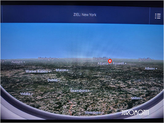 Es dauert nicht lange, da fliegen wir bereits zwischen Tampa und Orlando entlang Richtung Charleston, Atlanta lassen wir links liegen, überfliegen Washington D.C. und um 14.50 Uhr geht der Pilot schon zum Sinkflug über – unter uns liegt in Kürze der Flughafen JFK/New York und um 15:50 Uhr befinden wir uns schon mitten im Gewühl.
